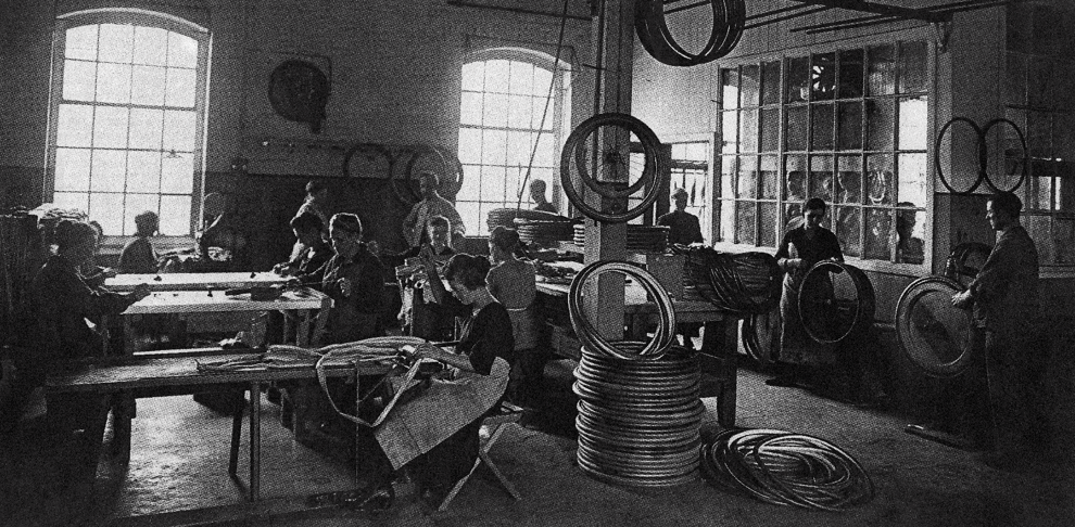 El primer neumático reforzado con acero sale de la línea de producción bajo el nombre “TS 771”, donde “TS” significa Textil-Acero.