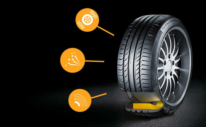 La tecnología ContiSilent reduce el ruido de rodadura en el interior del vehículo. Una capa especial de espuma de poliuretano aplicada en el interior de la banda de rodadura amortigua el ruido de la cavidad del neumático e impide su transmisión a la carrocería.