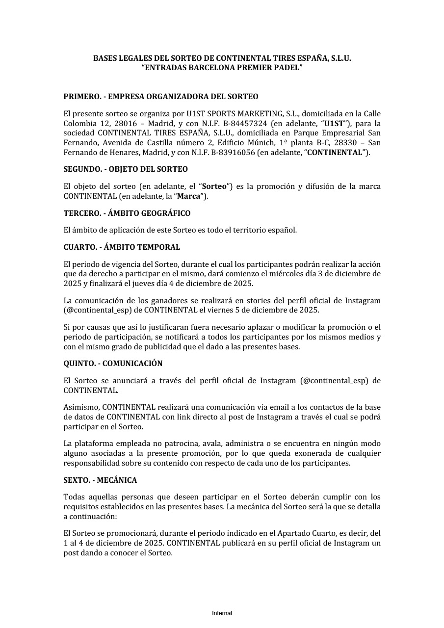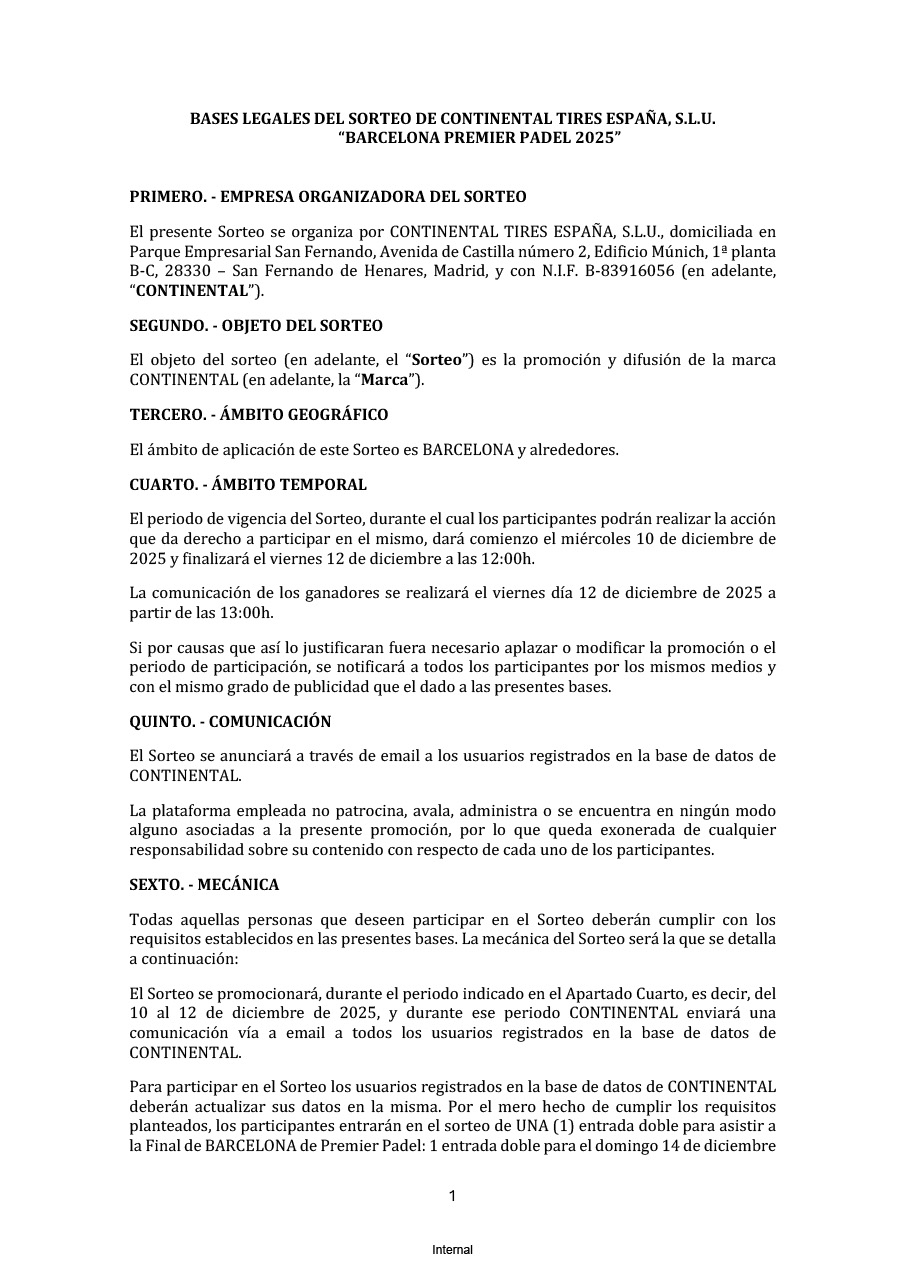 Bases Legales - Newsletter Sorteo entradas Premier Padel Málaga