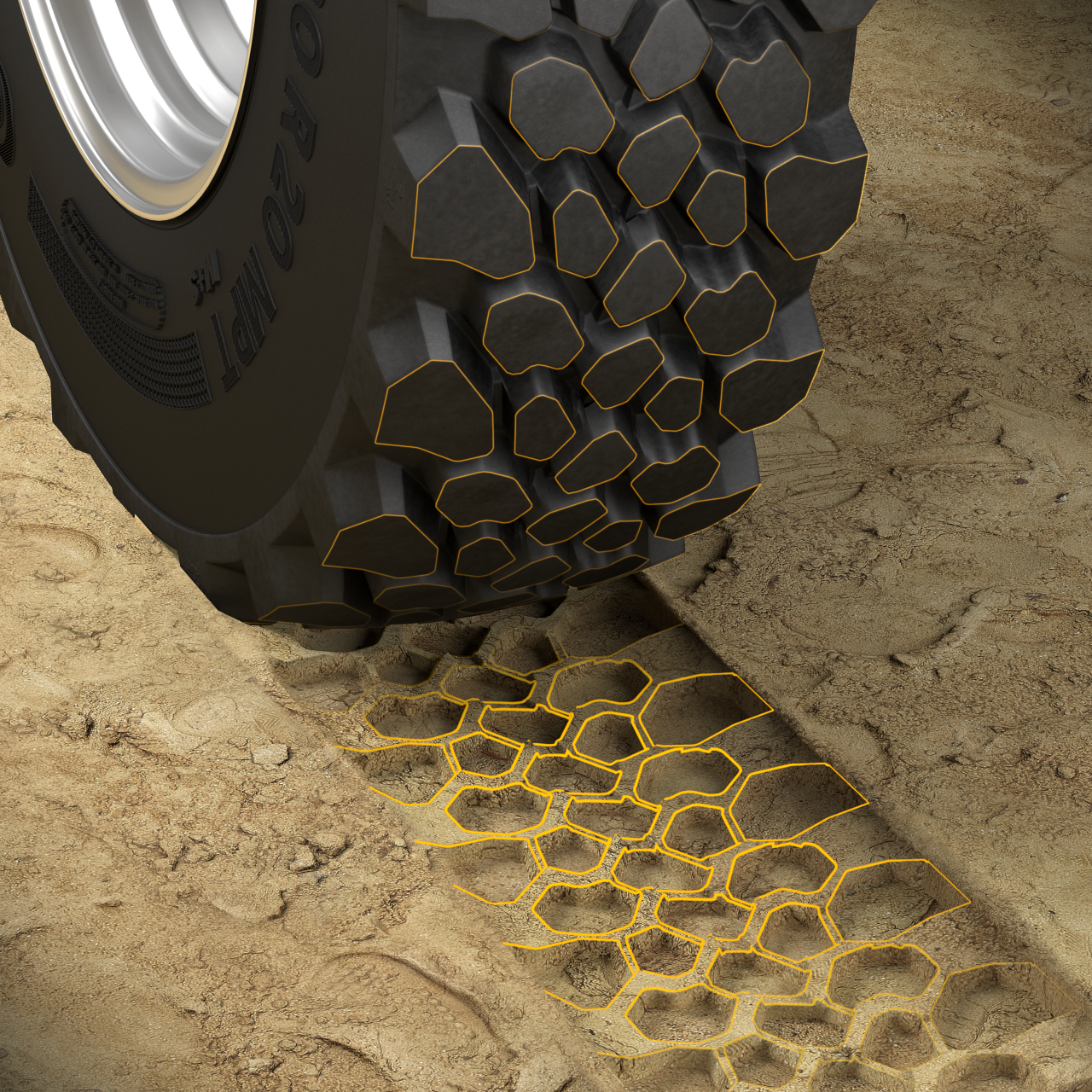 - Múltiples geometrías de bloques para una excelente tracción y capacidades de autolimpieza.